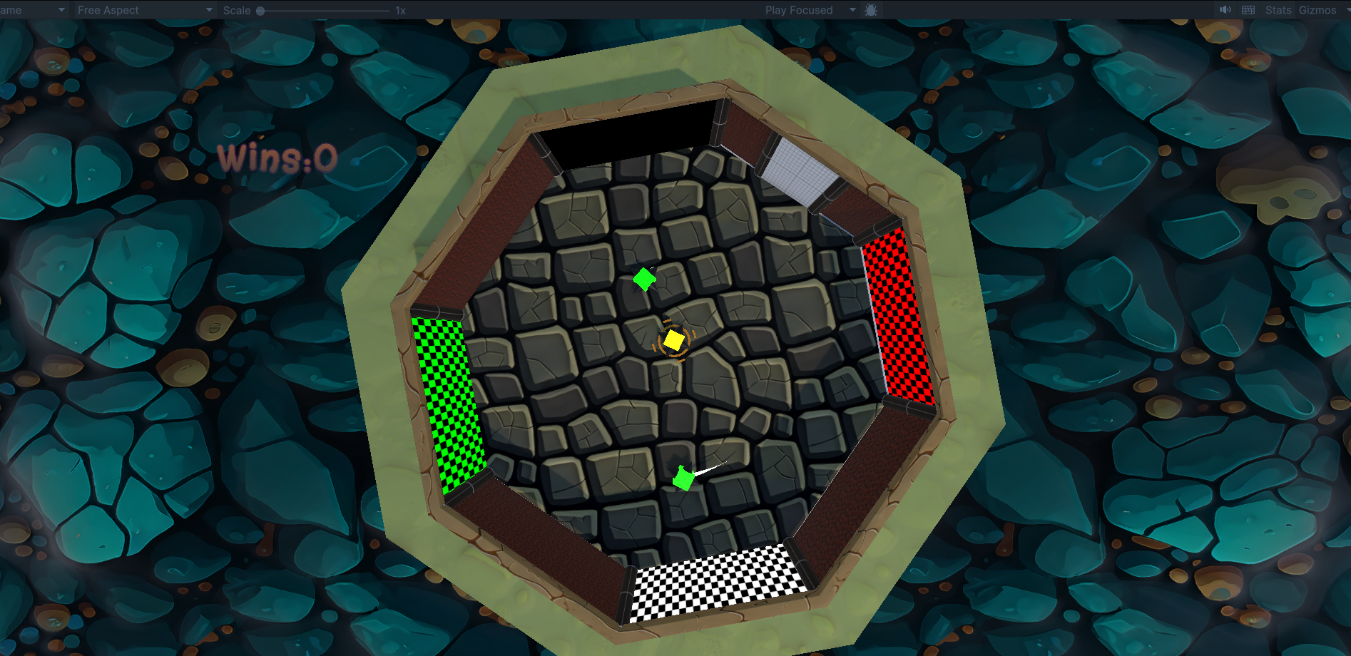 Spinny Cubes is a fast-paced survival game where you control a cube marked with a glowing yellow ring. Your mission: survive as long as possible in a colorful, chaotic arena filled with moving walls and power-ups.